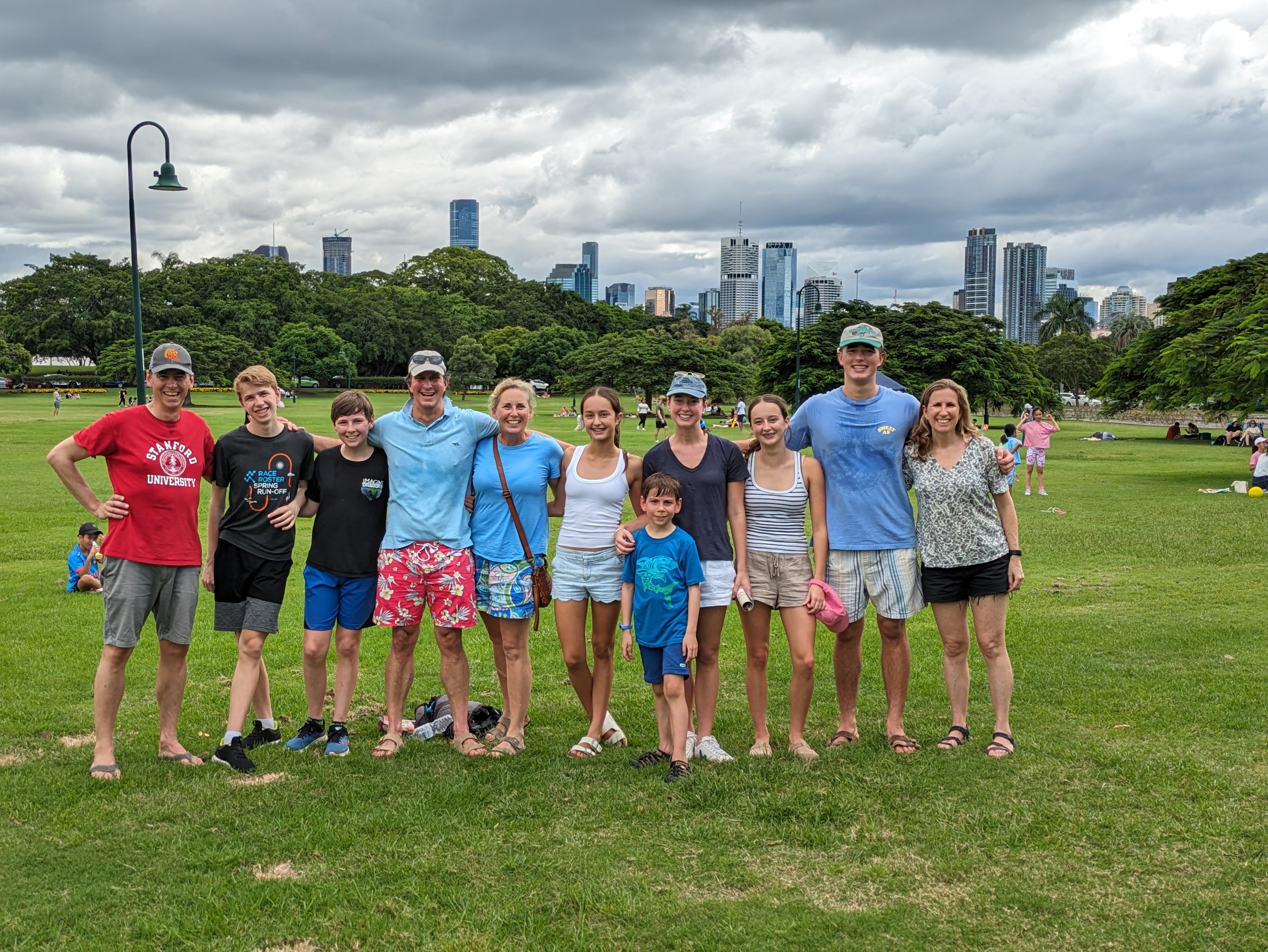 A sub-group of us (plus my cousin Chris and his daughter Emily) went to an Australian Rules Football (AFL) game that night, as I was quite keen to show the kids this crazy Australian sport.  For Calvin & Hobbes fans, the sport reminds me of “Calvinball”, with a set of incredibly complicated rules and lots of running, throwing, bouncing, kicking and tackling.  It’s played on a round field with 18 players on each team, an erratically bouncing rugby-like ball and non-stop action.  Definitely fun, and we became fast fans of the home team, the Brisbane Lions. We’ll be following them on Youtube for sure.  It’s worth checking out, along with the new women’s league (AFLW) where we’ll be cheering for the Sydney Swans because we got to know the parents of a player from that women’s team, on the beach the following week (Hi Hurley’s!).