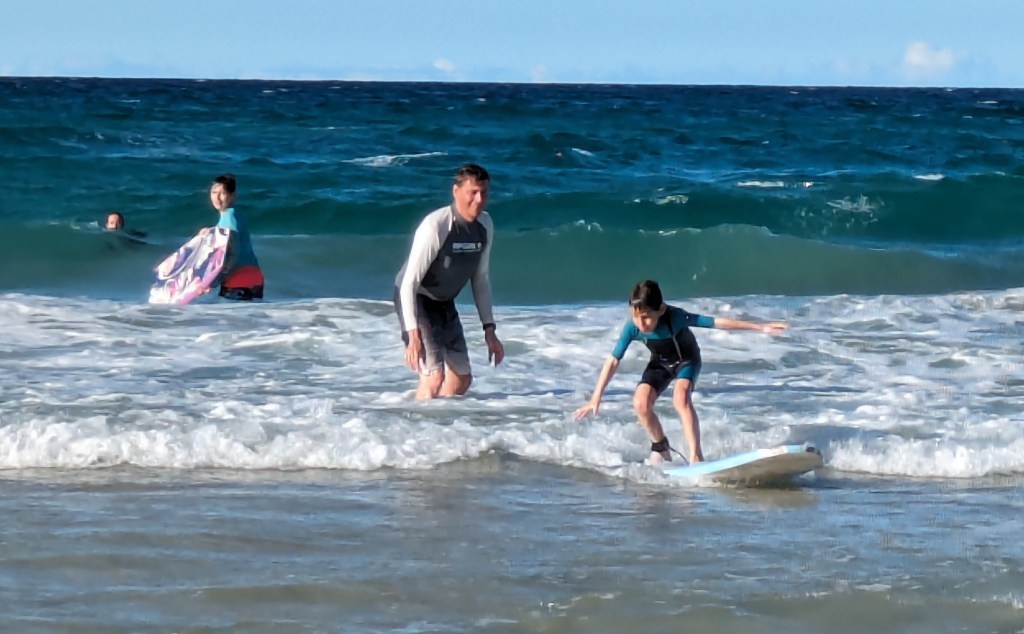 For our last week in Australia we stayed on the Gold Coast in the town of Tugan, a beautiful stretch of beach about 30 km long just south of Brisbane. I’d spent a few weeks there with my aunt, uncle and cousins back in my late teens, so it was super to be back again with one of the same cousins (Adam, his wife Catrina, and their super cool kids Soph, Jack and Millie off for their school holiday) and the same aunt and uncle, Wendy and Murray. We stayed at the Pelican Sands with an ocean facing apartment – highly recommend!