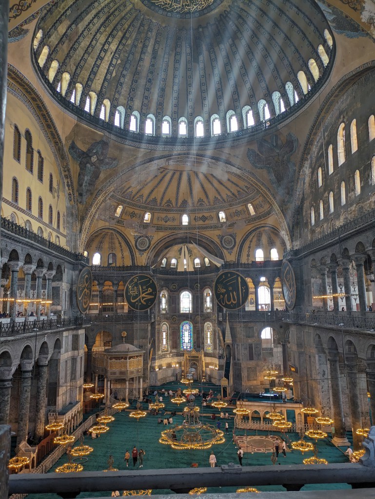 We promised the kids we would only do one mosque, one palace and one museum in Istanbul. To their credit, they were definitely engaged in the visits that we did do, so we agreed that it was a better approach than to swamp them with historical sights, and we only broke the rule once by visiting two mosques. The Hagia Sofia is technically now a mosque, but used to be a church, so we claimed that it counted in the church category, and we did only visit that one church. We were blown away by the age of so many of the structures in the city. The Hagia Sofia for example dates back to the 6th century and has such sophisticated architecture.