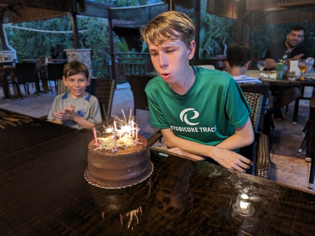 Our first family birthday celebrated on this trip was Nicholas’ 16th and we had a fun little party with cake at at the hotel. Some gifts were promissory notes, but many of us were pleased to be able to reveal souvenir-type gifts that we had been hiding in our bags for a while!