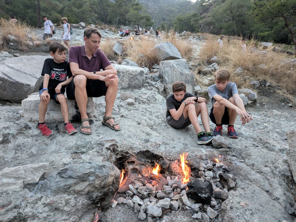 We also visited Mount Chimaera which is also a site of ancient ruins, and has continuous flames coming out of its rocks. The gas being emitted from the mountain is mainly methane and burns perpetually. They claim this site was the source of the Olympic flame tradition, but I didn’t find and corroborating sources, so I am doubtful. We hiked up at dusk to see the flames which were really striking on the mountain, and apparently in ancient times they burned so bright that sailors could navigate by the flames. If you block one burning area with rocks, flames will just pop up in another spot. Really wild.