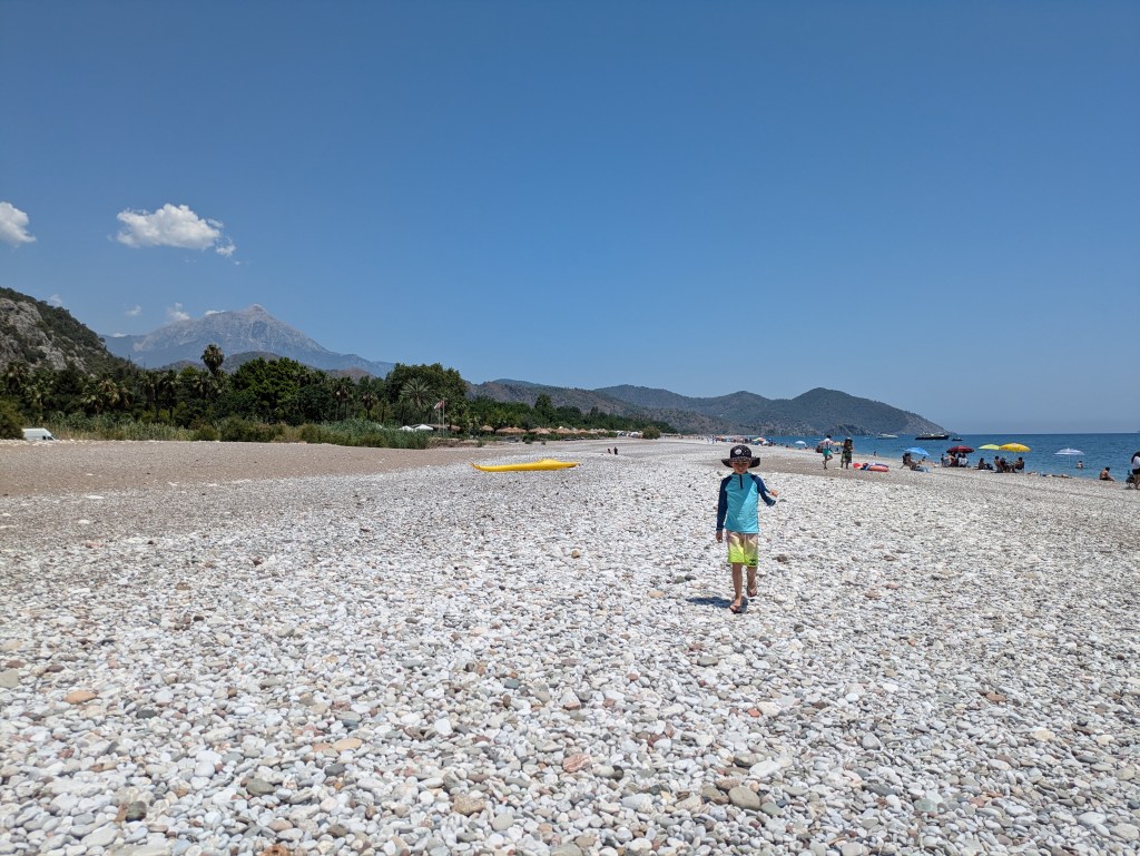 This is the last of the beach time on our holiday so we really appreciated the time. The beach was busier than we would have liked, but that was our fault for booking here right smack on a big Turkish holiday (whoops). That being said, it wasn’t too bad and there was always lots of room. The beach is a pebble beach, so not as good on the feet as sand beaches, but great for finding rocks and skipping stones. The water was warm, but cool enough to be refreshing.