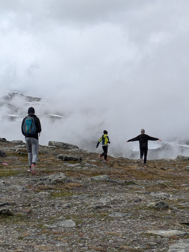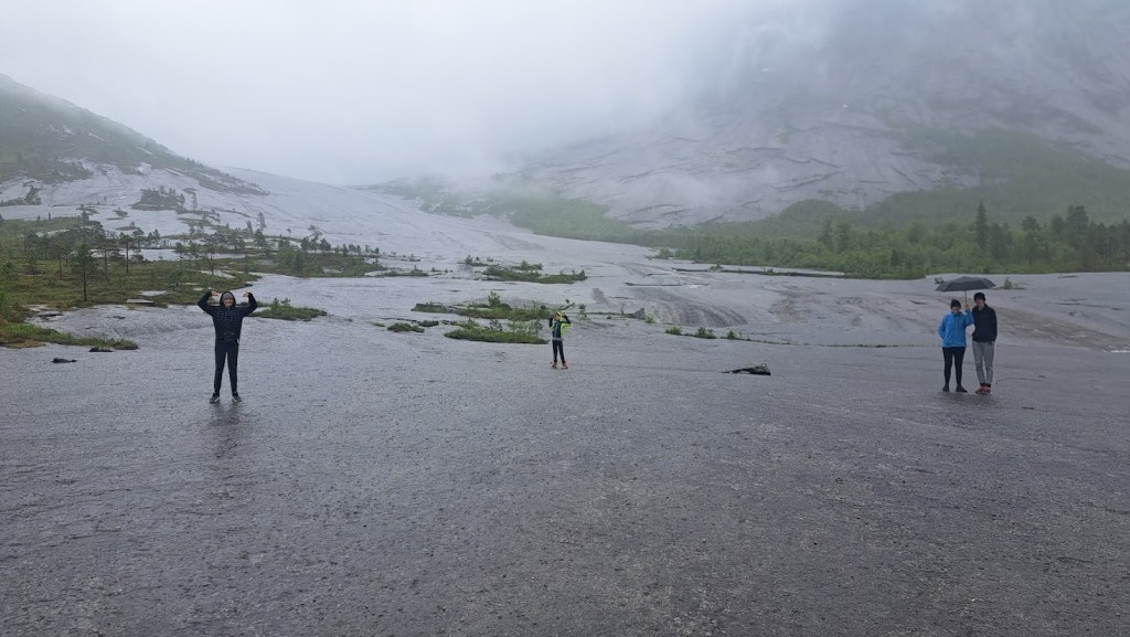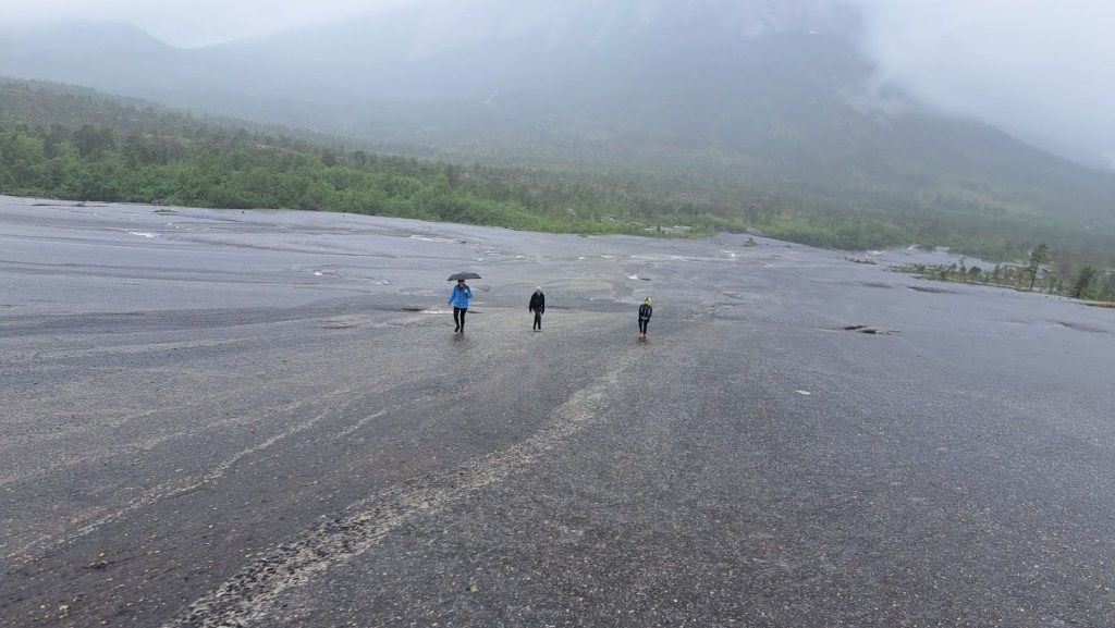 The Norway border is just about half an hour from Abisko and the famous Norwegian fjords were just a little further, so we took a short drive there to take a look. (Much discussion ensued as to whether this day trip counted as an additional official country on our tour. The kids say yes, and I say no, because we didn’t sleep there.) The first day we went to Norway it was pouring rain ALL day so while we got glimpses of the spectacular fjords we didn’t get to see as much as we would have liked, but it was still beautiful. We did do one amazing hike up one of the world’s largest expanses of continuous rock at Verdenssvaet, very cool, and very slippery in the rain.