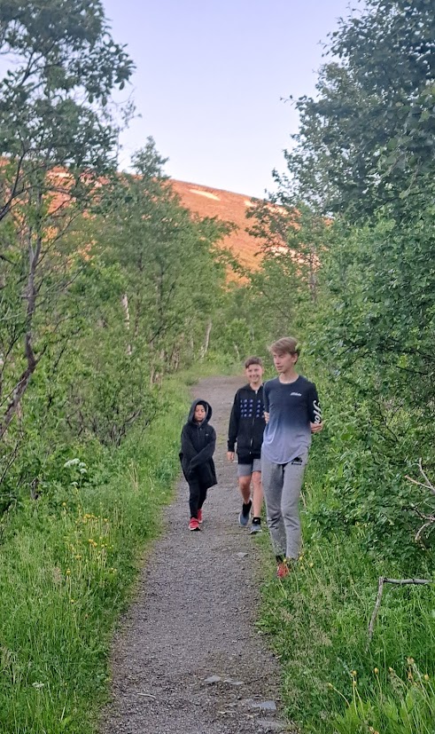 The 24 hours of sunlight was certainly an experience. The first few days there, it was cloudy most of the time so we didn’t get the full effect, but when the clouds blew away… wow! The sun never gets that high in the sky and at midnight does go behind some of the mountains but never actually sets. It was certainty hard to get to bed at a reasonable time because it always felt like daytime. Somehow of course the teenagers could sleep through it, but Steve and I found it much harder.