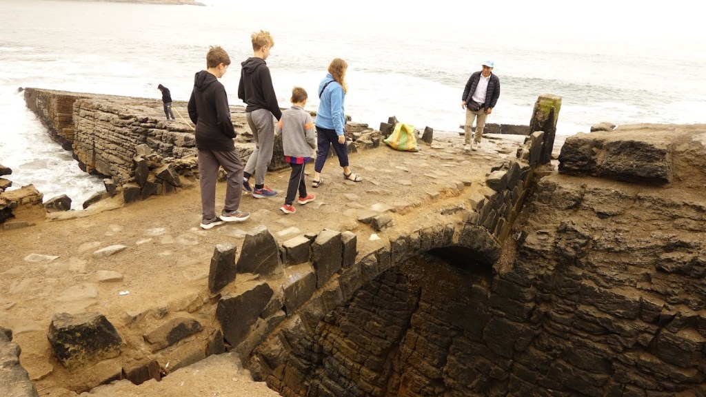 Lima definitely seems to have it all: history, ocean, eclectic neighbourhoods and great food. We tried to sample a little of each. Our first afternoon we spent visiting the old centro of Lima with a collection of buildings from the Spanish colonial era: the Basilica of Santa Domingo, the Basilica and Convent of San Francisco, the Palacio du Gobierno and the Catedral de Lima. The kids were most enamored with stuffies they could buy made out of baby alpaca wool (no alpacas were harmed in the making of the stuffies!). In the evening we went to see the “Magical Fountain Park” in the Parque de la Reserva where they put on a water and light show each evening. Apparently it’s currently the world record holder for the largest fountain complex in the world although I haven’t checked sources on that…