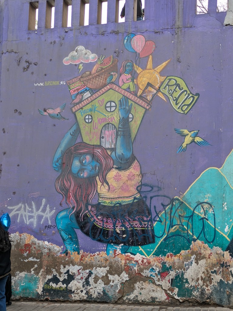 We did a great food and art tour which took us to the Chorillos and Barranco area. Chorillos is home to a busy fishing pier and is the working class area where mostly fisherman live. We had a really tasty breakfast at the pier of fish straight off of the boat and ate lunch in a tasty hole-in-the-wall restaurant we would never have found on our own. We were introduced the drink “Chicha Morada” made from black corn, so tasty. Barranco is the opposite of Chorillos – lots of big houses, brightly coloured buildings, murals everywhere – as it’s the bohemian hub of the region. A really fun and scenic place to walk around.